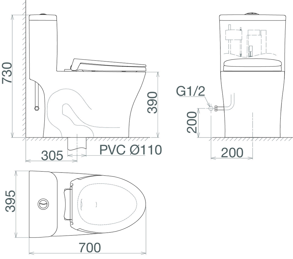Linh phụ kiện đi kèm: Nắp ngồi, Gioăng cao su