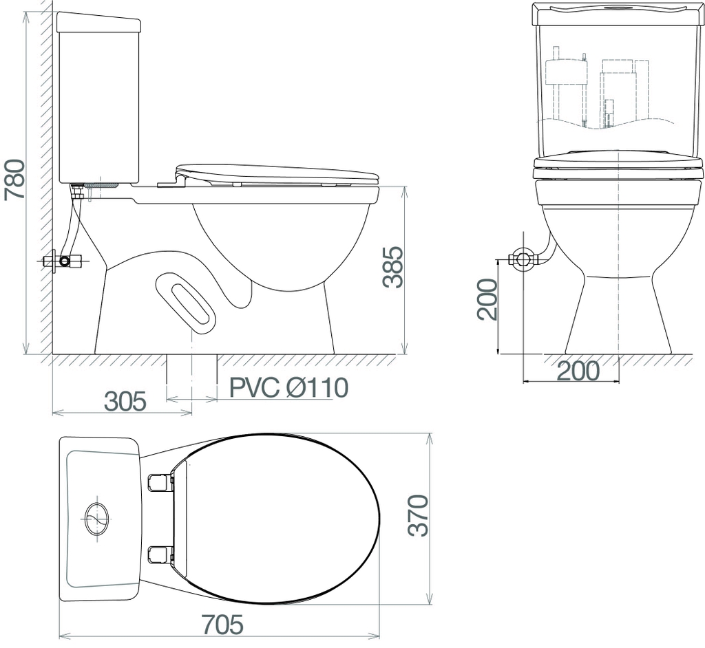 Xả thẳng Washdown: Lượng nước lớn tráng rửa toàn diện lòng bồn cầu, đẩy sạch cặn bẩn nhanh chóng.