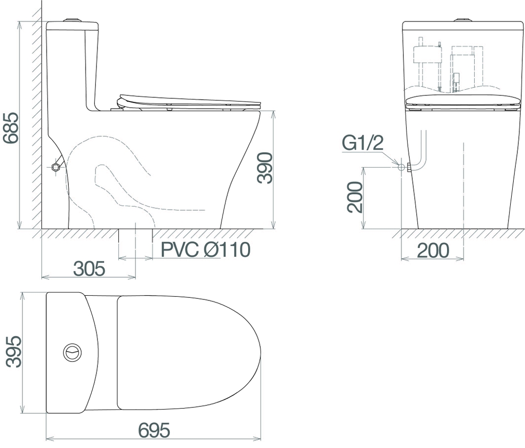 Xả xoáy mạnh mẽ, tiết kiệm nước và giảm tiếng ồn.