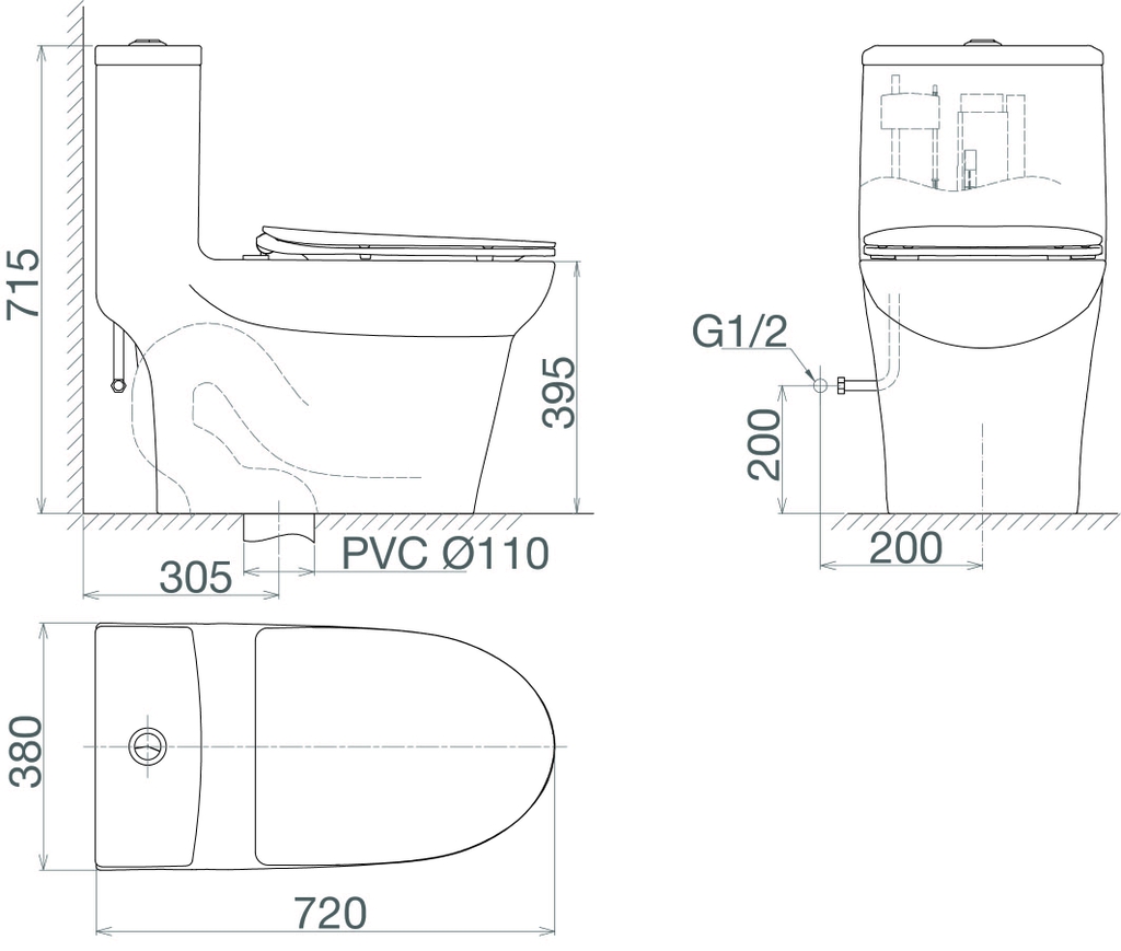 Linh phụ kiện đi kèm: Nắp ngồi, Gioăng cao su