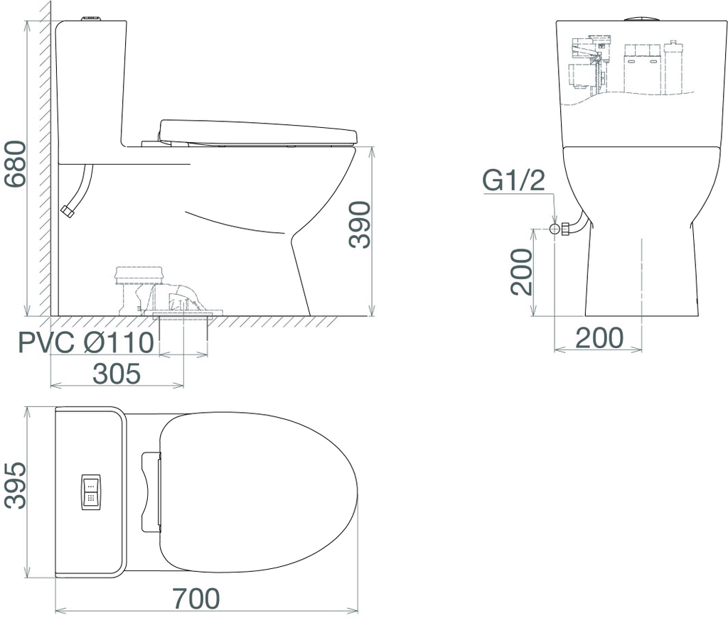 Vành Rimless: Không chứa nước, không tạo khe, loại bỏ nơi trú ngụ vi khuẩn, dễ lau chùi