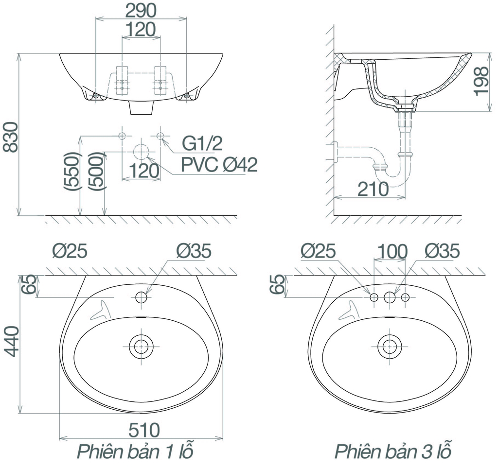 Lỗ đặt vòi trên chậu: Cho phép lắp đặt vòi trực tiếp lên chậu, tiết kiệm diện tích, dễ dàng thay thế