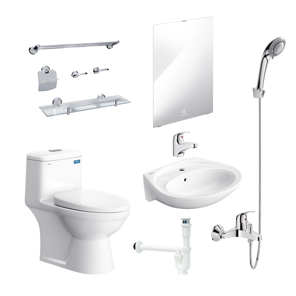 Combo thiết bị phòng tắm Tiết kiệm Viglacera là giải pháp đồng bộ dành cho những không gian vừa và nhỏ, bao gồm đầy đủ bàn cầu, chậu rửa, sen vòi, gương soi và phụ kiện đi kèm. Với thiết kế tối giản nhưng tiện dụng, bộ sản phẩm mang đến sự gọn gàng, thẩm mỹ và đầy đủ công năng cơ bản cho sinh hoạt hằng ngày, đồng thời giúp tiết kiệm chi phí mà vẫn đảm bảo sự tiện nghi, hiện đại cho gia đình.