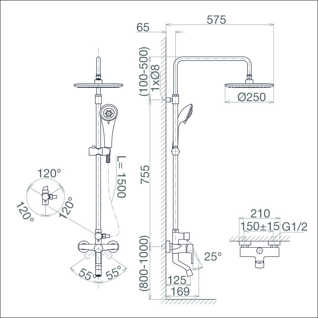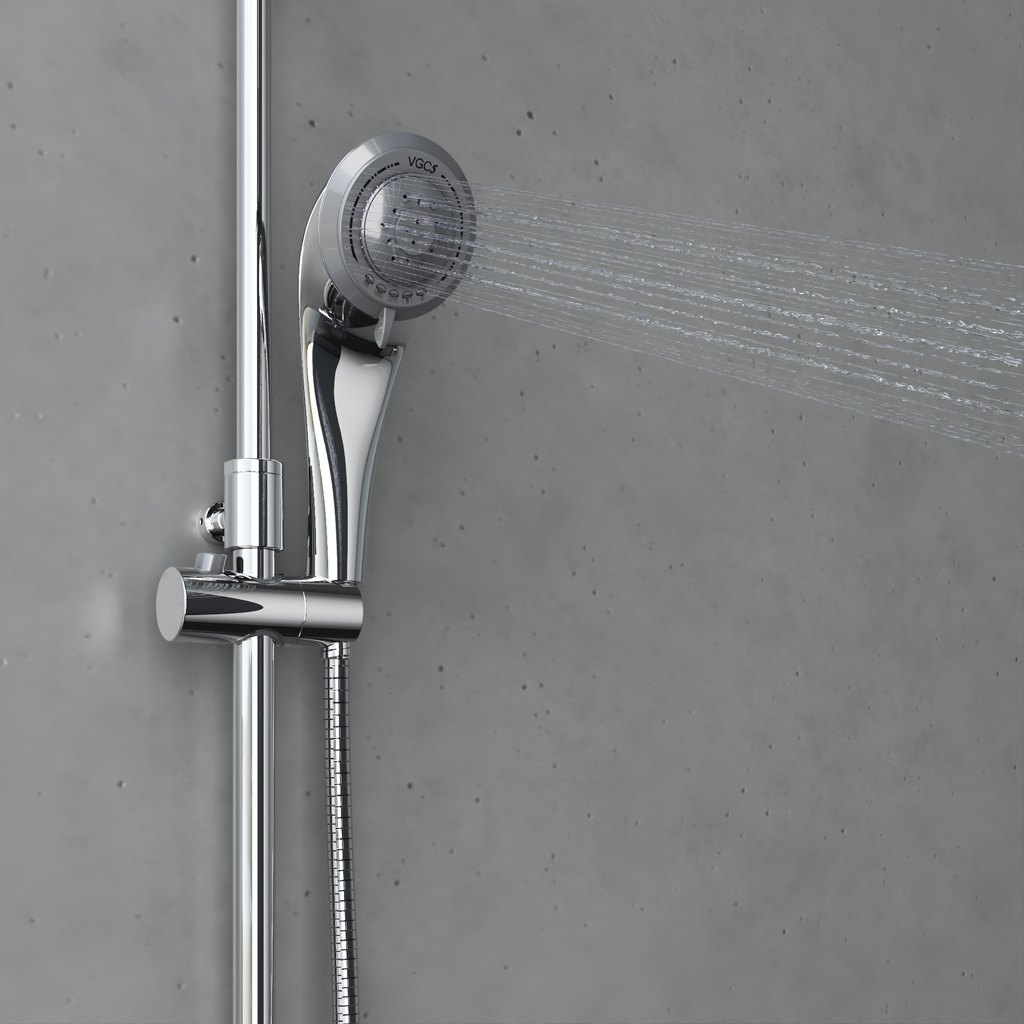 Thiết kế nhỏ gọn: Sen tắm gắn tường tinh giản, tiết kiệm diện tích. Tay sen vừa vặn, dễ cầm nắm.