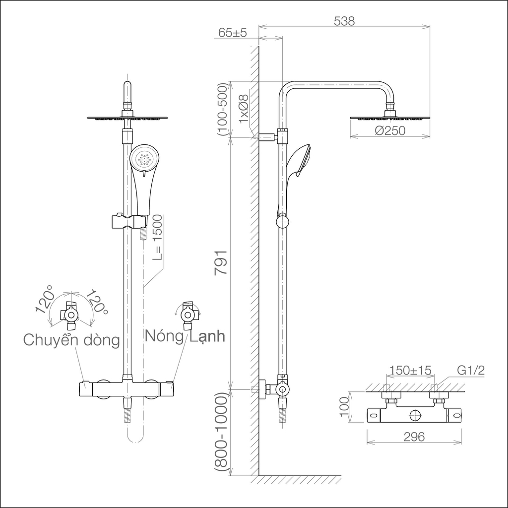 Áp lực nước khuyến nghị: P = 0.5 ~ 5 (bar)