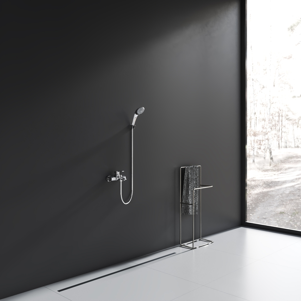 Thiết kế nhỏ gọn: Sen tắm gắn tường tinh giản, tiết kiệm diện tích. Tay sen vừa vặn, dễ cầm nắm.