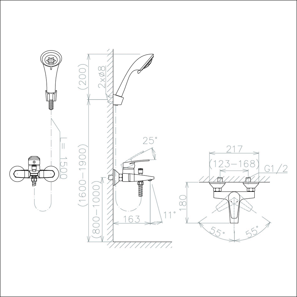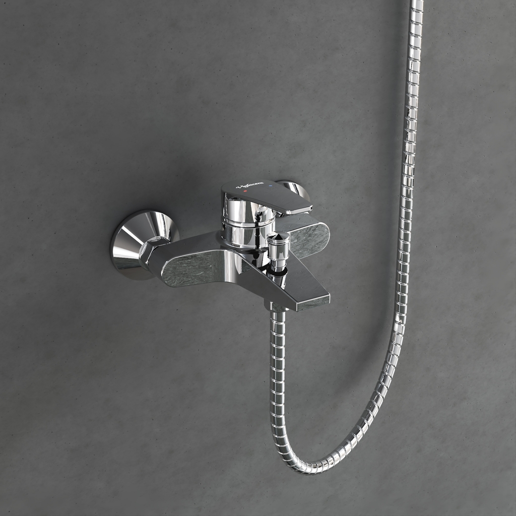 Thiết kế nhỏ gọn: Sen tắm gắn tường tinh giản, tiết kiệm diện tích. Tay sen vừa vặn, dễ cầm nắm.