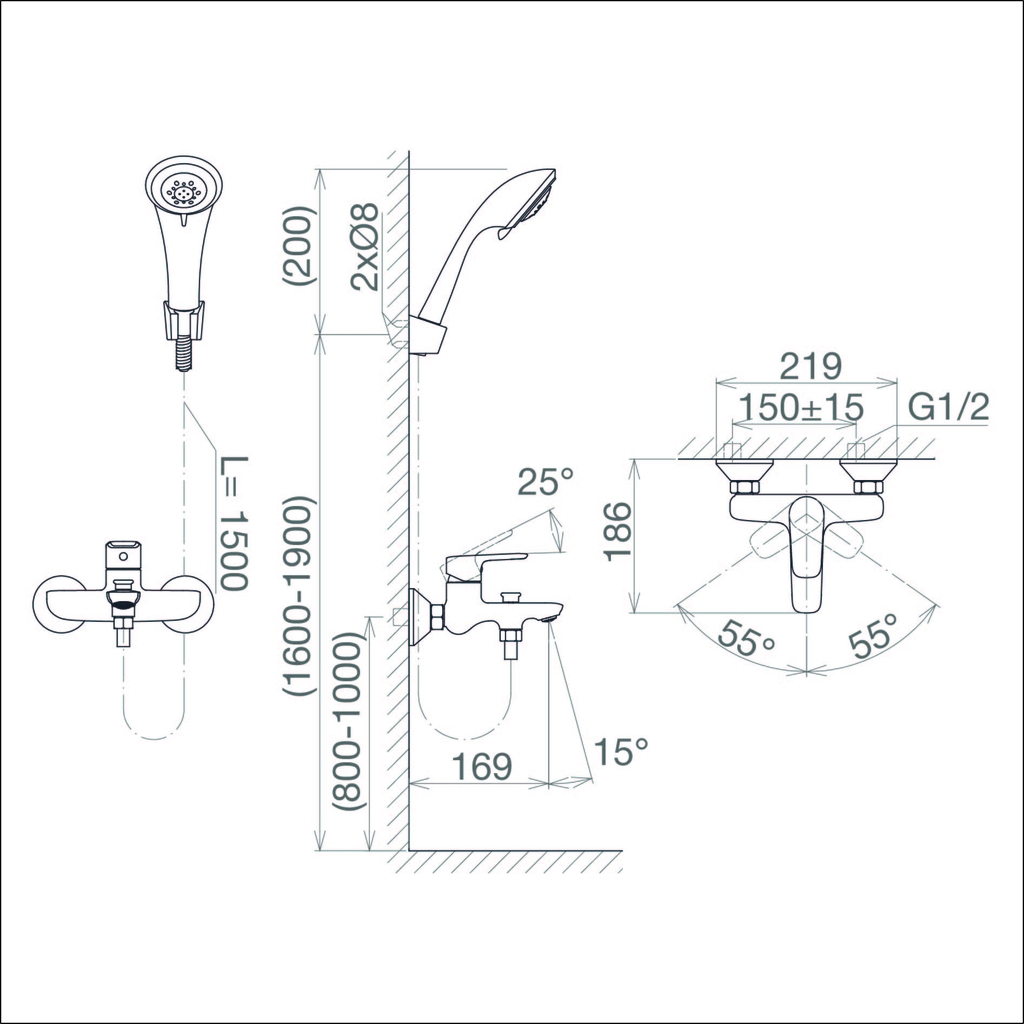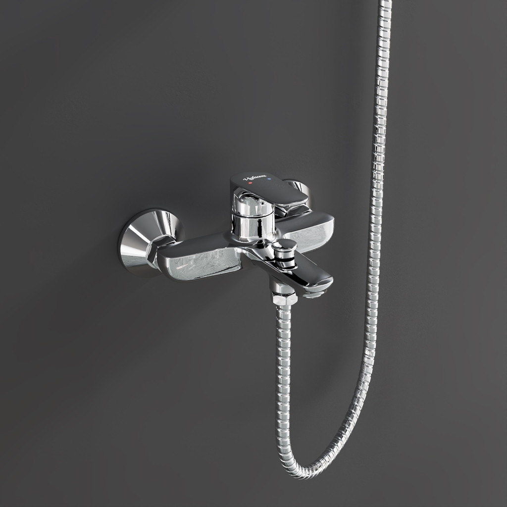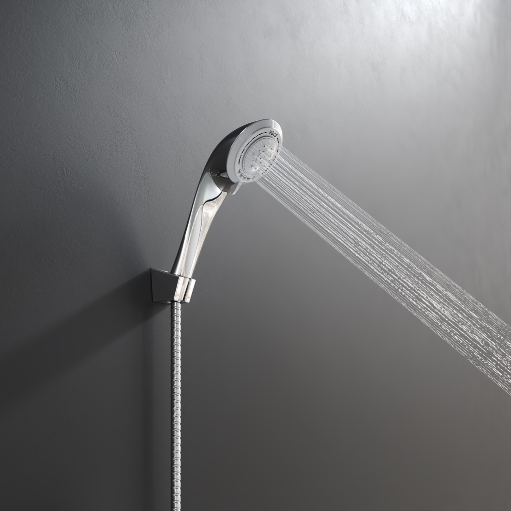 Thiết kế nhỏ gọn: Sen tắm gắn tường tinh giản, tiết kiệm diện tích. Tay sen vừa vặn, dễ cầm nắm.