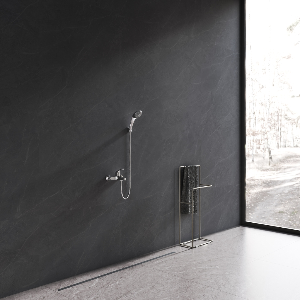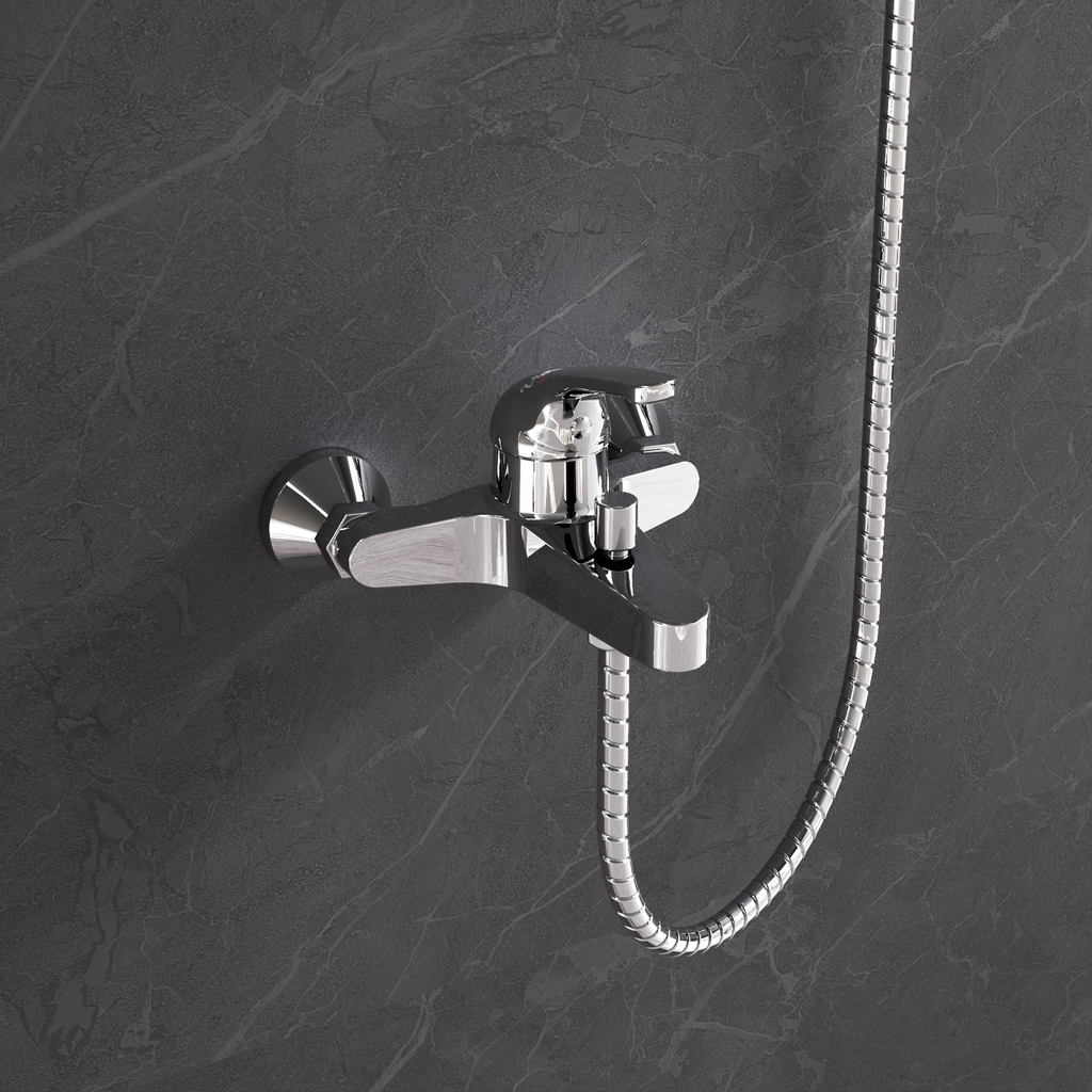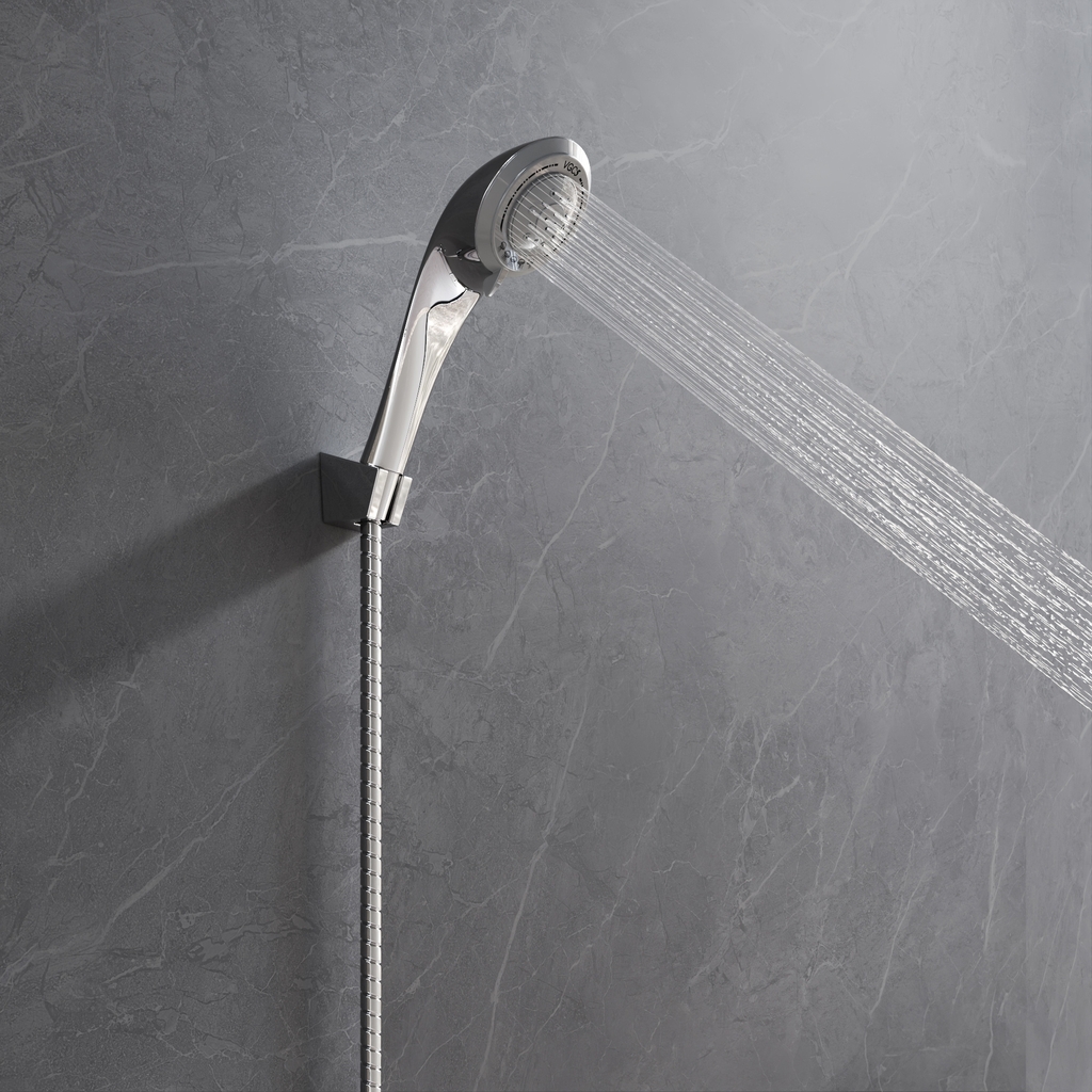 Thiết kế nhỏ gọn: Sen tắm gắn tường tinh giản, tiết kiệm diện tích. Tay sen vừa vặn, dễ cầm nắm.