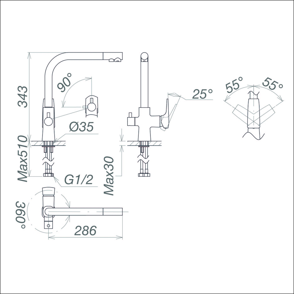 Kiểu lắp đặt: Trên chậu rửa bát, trên mặt bàn