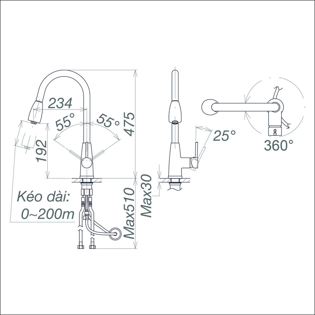 Các ưu điểm nổi bật của Vòi rửa bát VG768 có thể kể đến như: